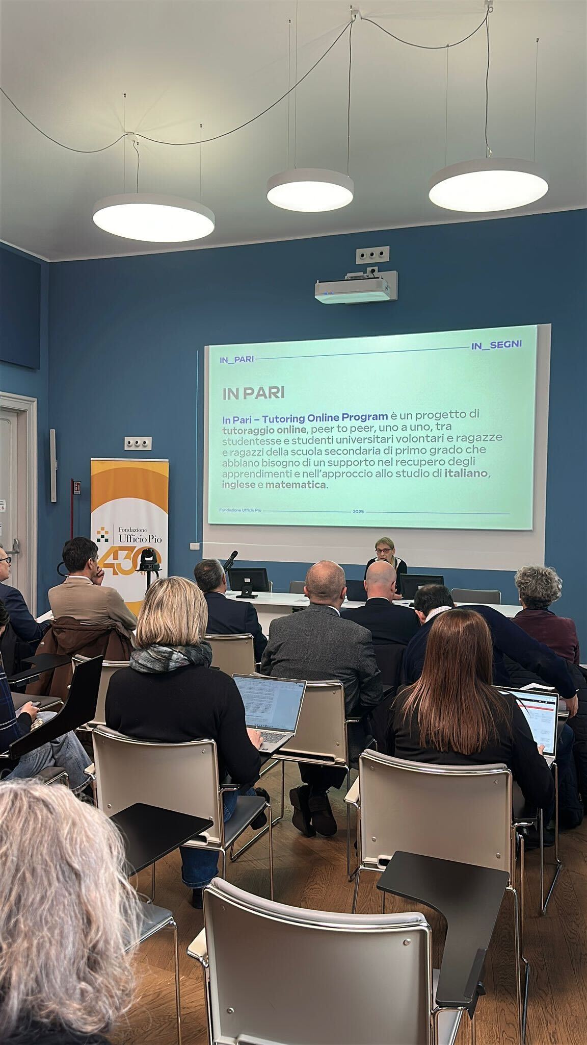 Il 21 novembre 2025, presso lo Spazio Incontri di Piazza Bernini, Fondazione Ufficio Pio e Fondazione per la Scuola insieme agli altri partner hanno presentato in una conferenza stampa la nuova edizione di In pari – Tutoring Online Program, il progetto di tutoraggio che mette in contatto studenti universitari con ragazzi e ragazze delle scuole secondarie di primo grado, offrendo supporto nello studio e nello sviluppo di competenze trasversali.